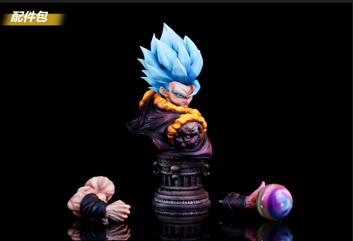 1. Gogeta Configuration: Figure + Replacement Hands (Large and Small Energy Wave FX, Lifting Hand Gesture, Downward Hand Gesture) + Three Head Sculpts + Head Sculpt Bust + Simple Head Sculpt Stand